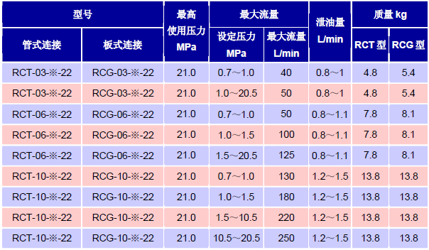 公布油研單向減壓閥RCT系列技術(shù)參數(shù),如圖所示: