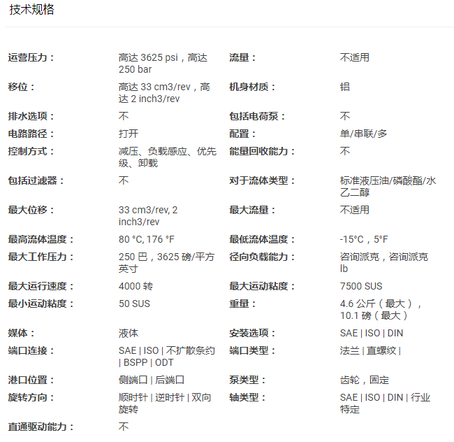 PGP511A0060CK1H2NE5E3B1B1派克系列齒輪泵3349111942參數(shù)介紹