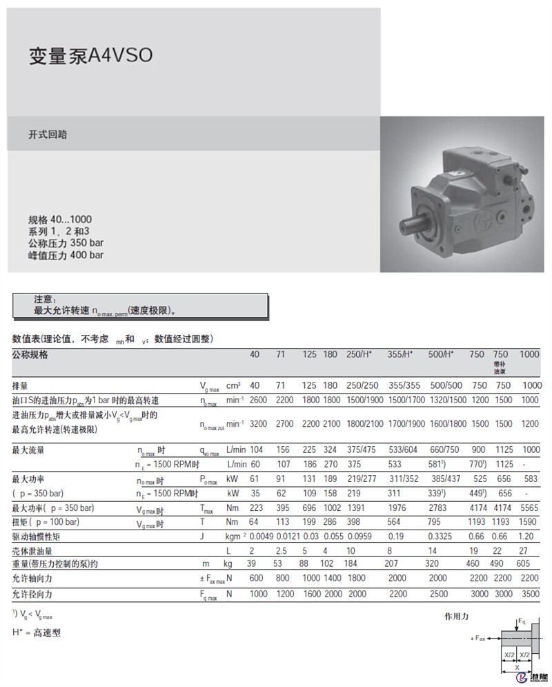 力士樂(lè)軸向柱塞變量泵 A4VSO 說(shuō)明: