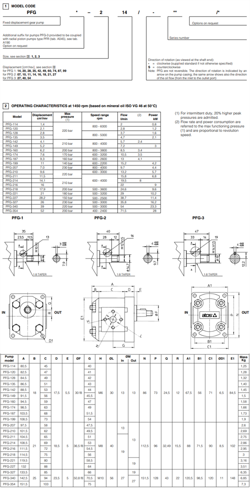 PFG1,PFG2,PFG3系列阿托斯ATOS齒輪泵,PFG系列齒輪泵型號(hào)及參數(shù)