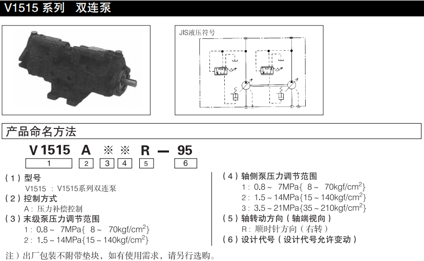 大金V1515系列雙連泵型號說明: