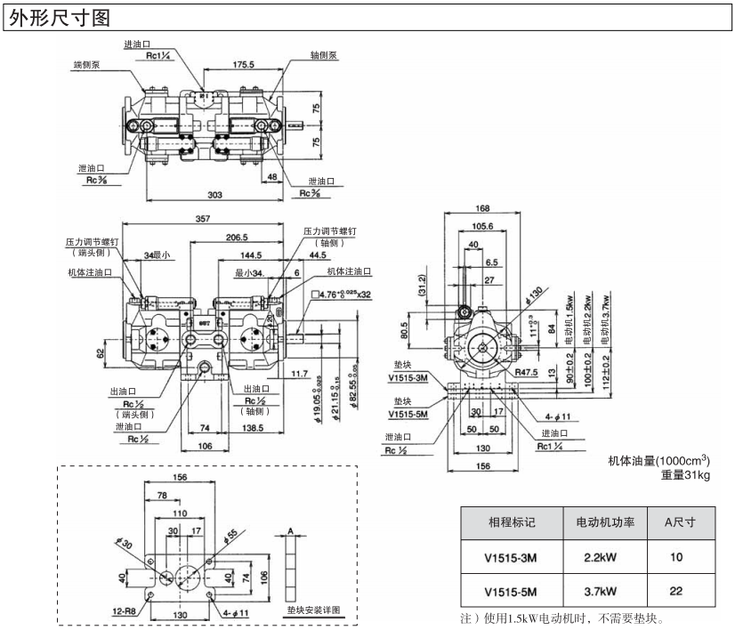 大金V1515系列雙連泵尺寸圖: