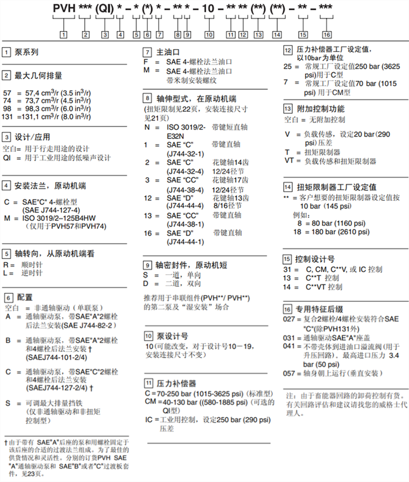 pvh074r01ab10a250000002001ae010a伊頓威格士柱塞泵型號說明: