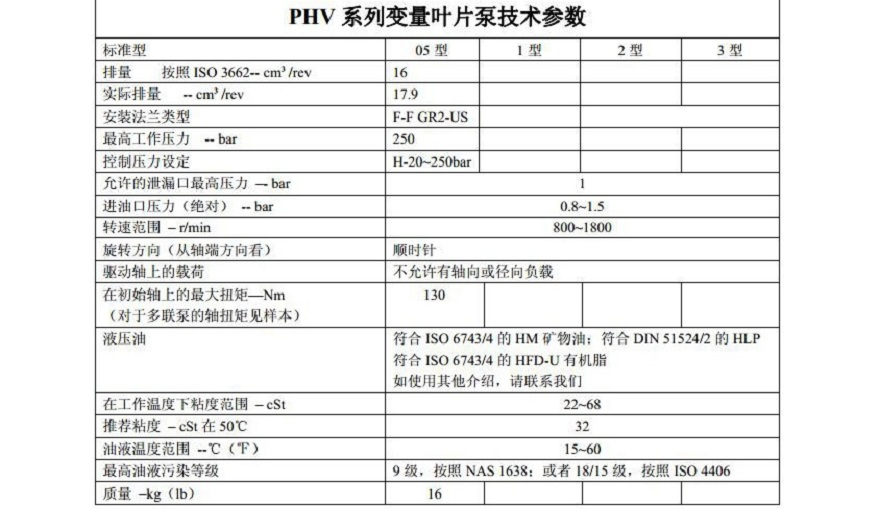 PHV系列變量葉片泵的技術(shù)規(guī)格因型號而異,但通常包括排量、工作壓力、轉(zhuǎn)速范圍等參數(shù)。具體的技術(shù)規(guī)格需參考產(chǎn)品說明書或聯(lián)系廠家獲取。