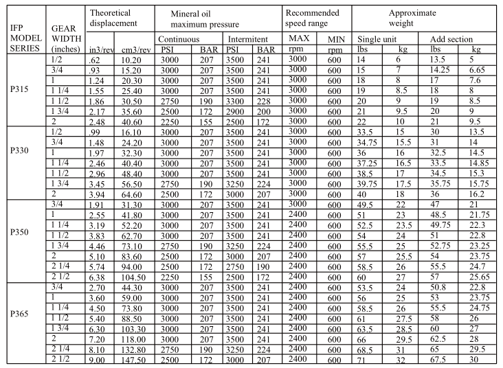 P315,P330,P350,P365齒輪泵技術參數(shù):