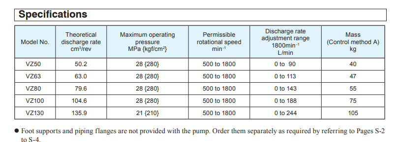 大金VZ系列柱塞泵特征: