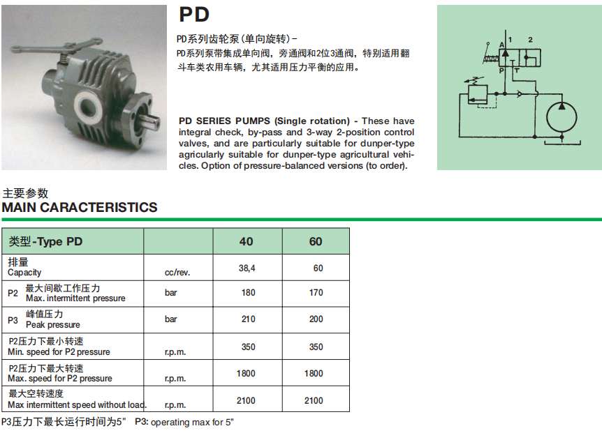 Ronzio PD 系列泵特別適用于農(nóng)用卡車應用,并配備截止閥、旁通、3 路 2 位分配器。此外,它也可用于平衡板。