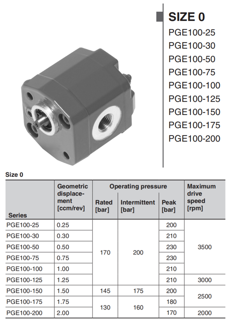PGE100 是我們用于開(kāi)環(huán)液壓系統(tǒng)的外嚙合齒輪泵的 0 號(hào)尺寸。