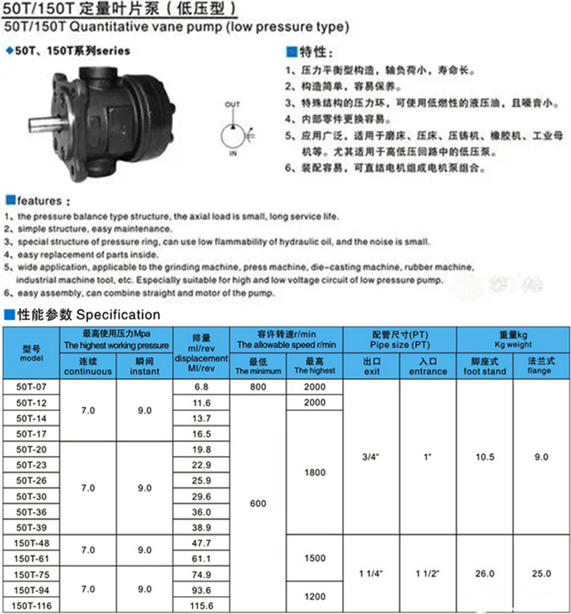 油研50T/150T系列葉片泵: