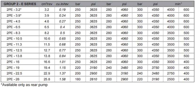 薩拉米2PE系列齒輪油泵型號(hào)及參數(shù):