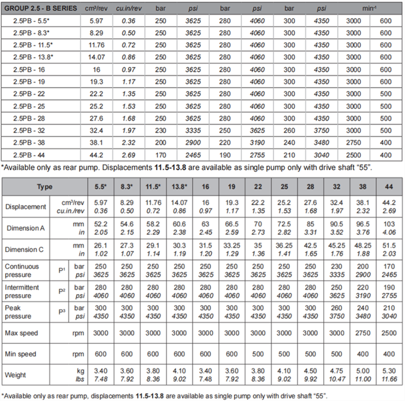 SALAMI薩拉米齒2.5PB系列齒輪泵型號及規(guī)格參數(shù):