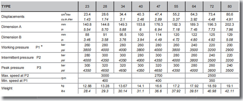位移從1.43至4.91立方英寸/轉(zhuǎn)。