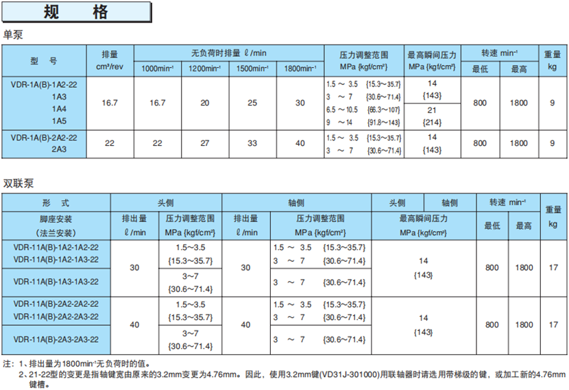 不二越VDR22設(shè)計系列變量葉片泵技術(shù)參數(shù):