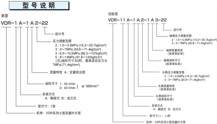 不二越VDR22設(shè)計系列變量葉片泵型號說明:
