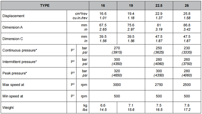 SALAMI齒輪泵的排量為16 cm3/轉(zhuǎn)速至26 cm3/轉(zhuǎn)速(從1.01立方英寸/轉(zhuǎn)至1.58立方英寸/轉(zhuǎn))。