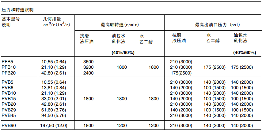 威格士PVB系列軸向柱塞泵技術(shù)參數(shù):
