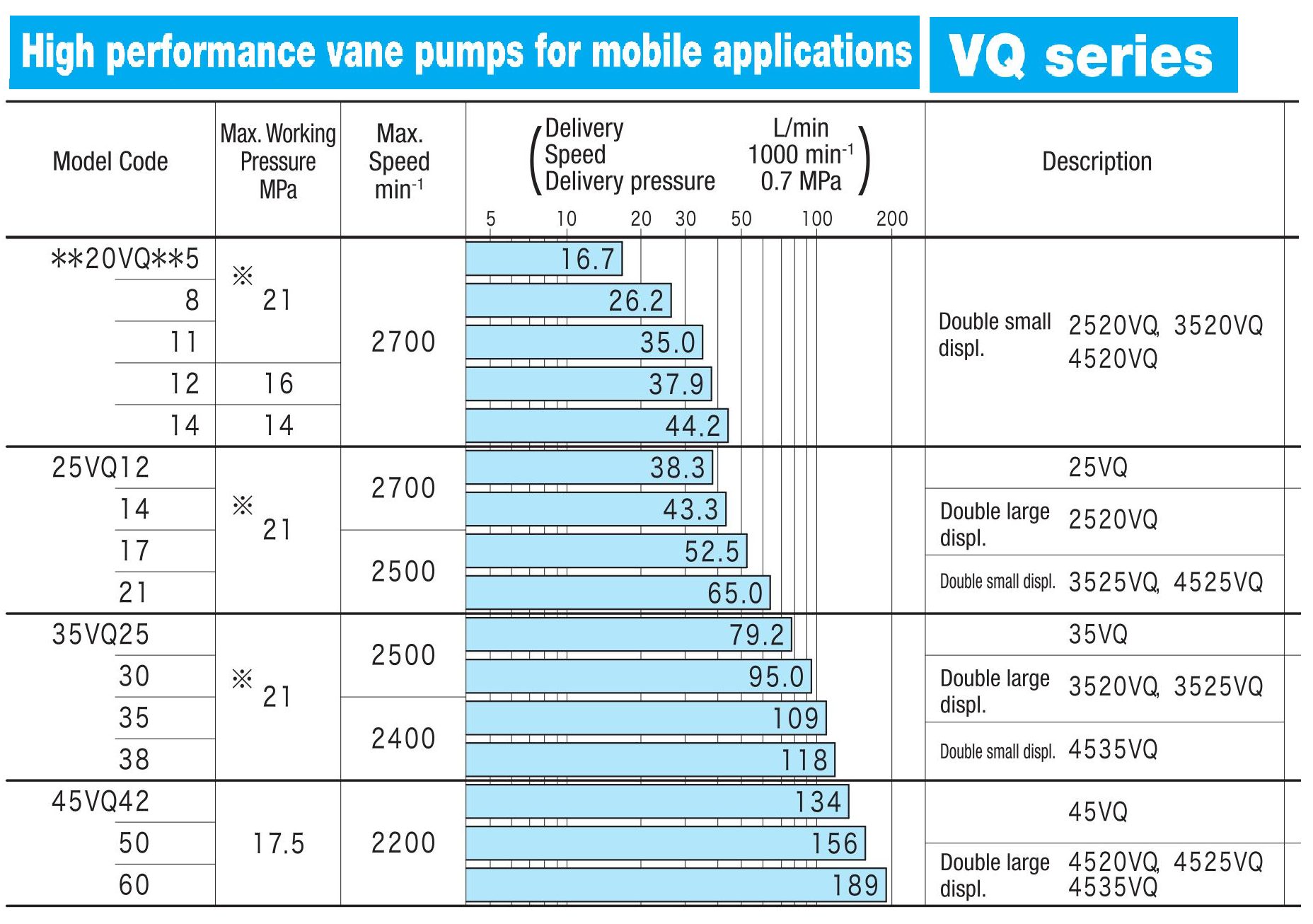 VQ 系列高性能葉片泵專為移動應(yīng)用而設(shè)計。與傳統(tǒng)的葉片泵相比,該泵的柔性側(cè)板機(jī)構(gòu)提供了更高的容積效率,并且在熱或冷環(huán)境下的啟動過程中提供了高抗咬合性。