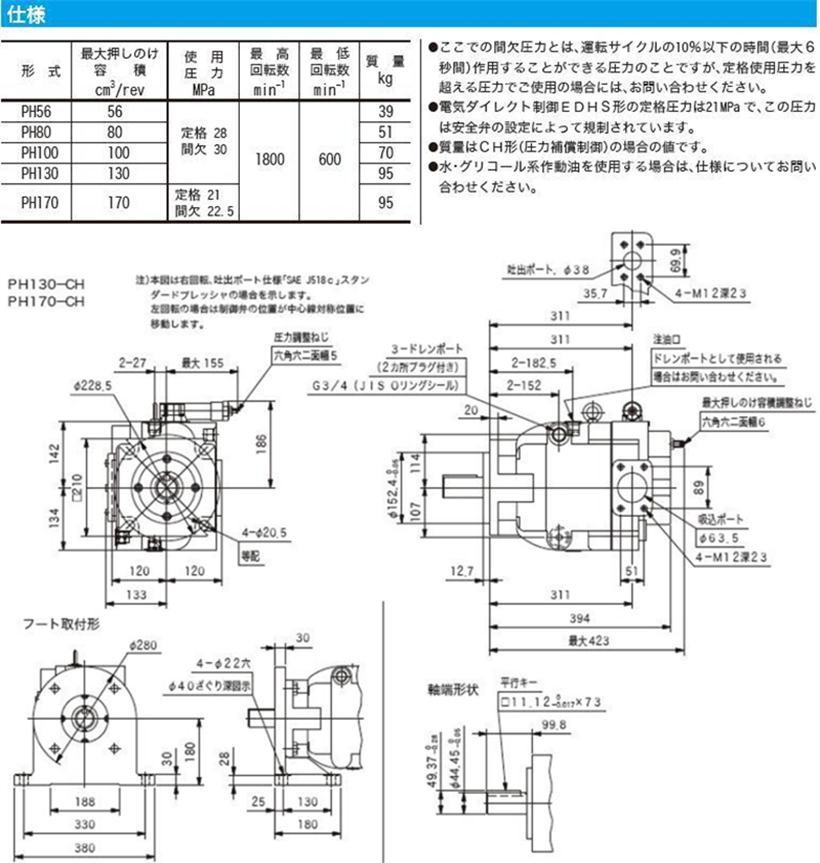 東京計(jì)器柱塞泵PH系列:PH80、PH100、PH130、PH170。