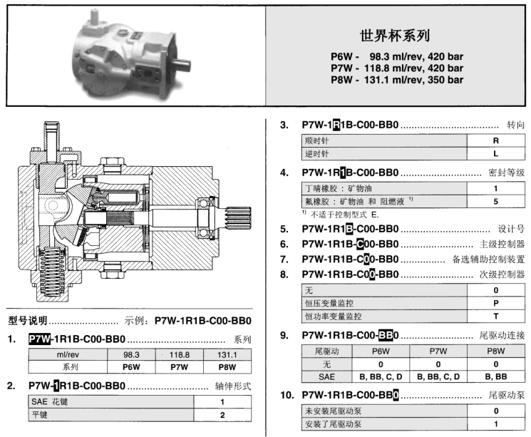 P6W-98.3 ml/rev,420bar  ,  P7W-118.8 ml/rev,420bar ,  P8W-131.1 ml/rev,350bar